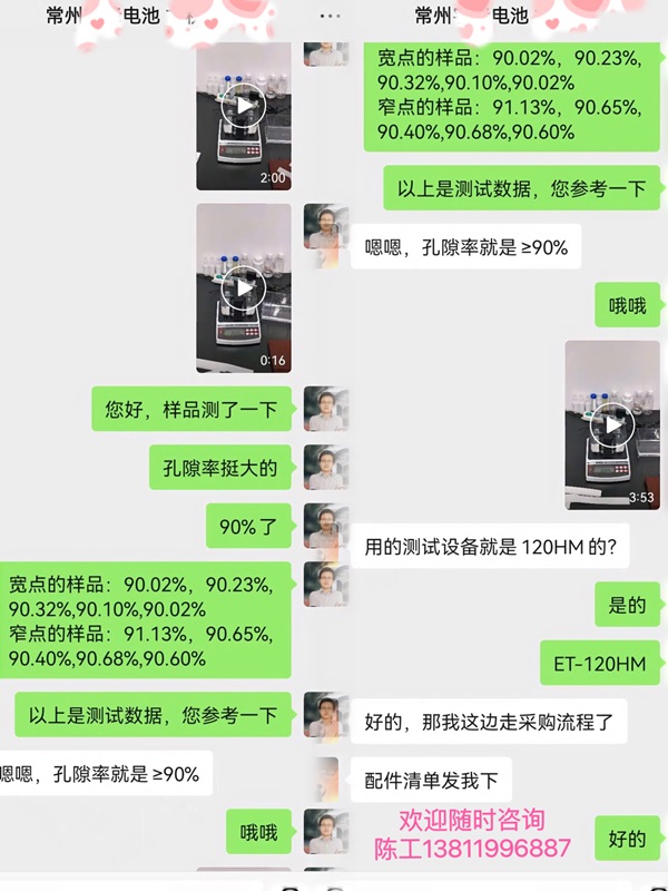 常州一電池廠的用戶打電話來咨詢我們的孔隙率測(cè)試儀,根據(jù)它要測(cè)試的產(chǎn)品質(zhì)量很輕,鋰電池隔膜材料,推薦了ET-120HM多功能型密度和孔隙率測(cè)試儀。