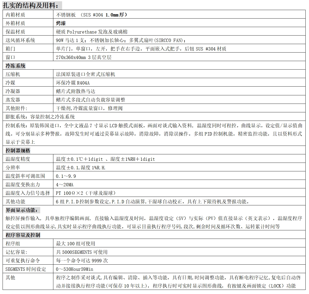 電源線4.0 mm2x3蕊;USB導(dǎo)出端子一個(gè);不銹鋼SUS #304方型沖孔鋼板置物架2片不銹鋼可調(diào)整間距40mm置物架軌道2組;11W節(jié)能照明窗口燈一支;機(jī)體左側(cè)ψ50mm測(cè)試孔1個(gè)附不銹鋼孔蓋1只,硅膠塞頭1只);標(biāo)準(zhǔn)測(cè)試用不織布1片;控制器使用說明書一套;操作說明書一套。